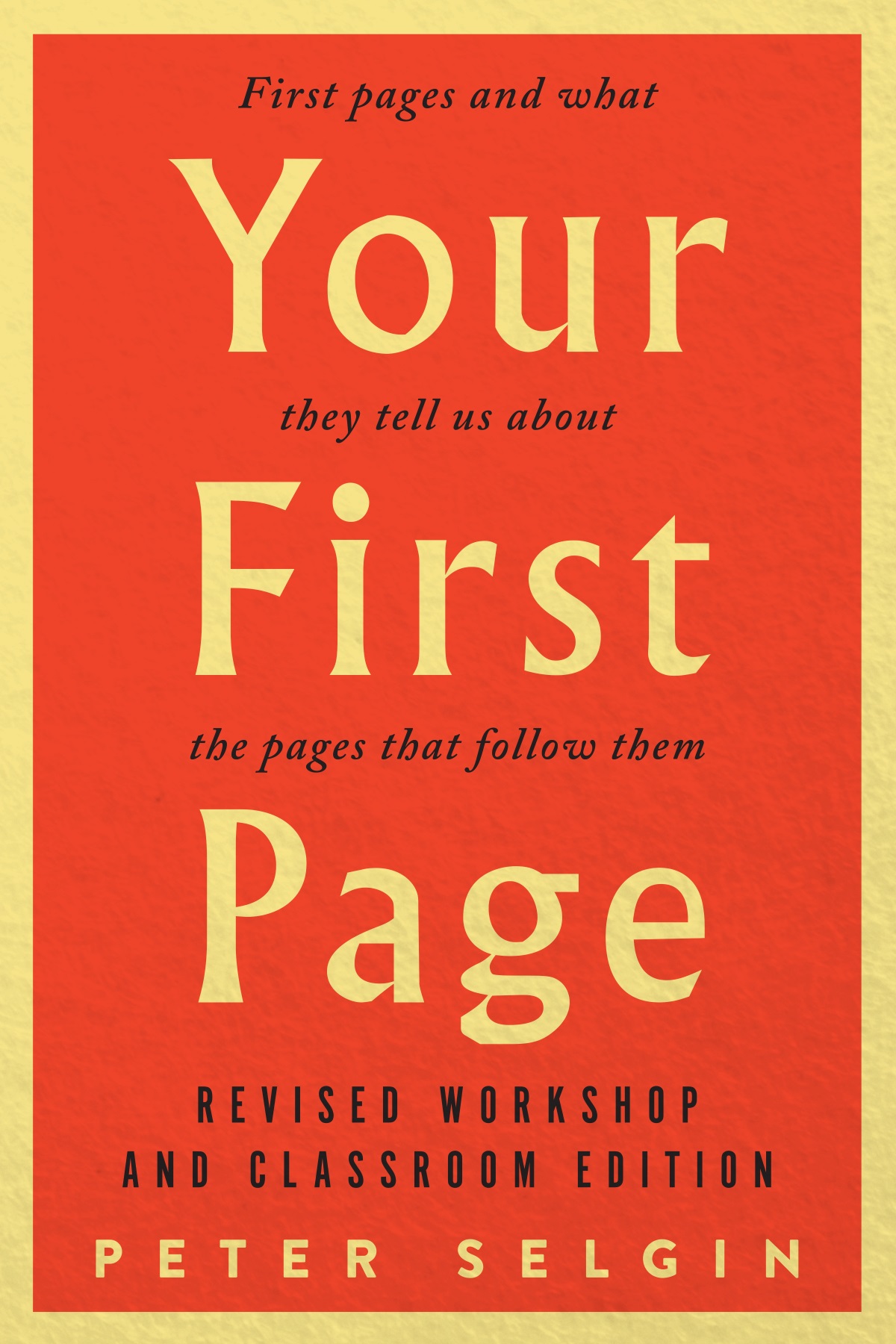 This new workshop and classroom edition of Your First Page has been revised to better fit the needs of creative writing classrooms and workshops.